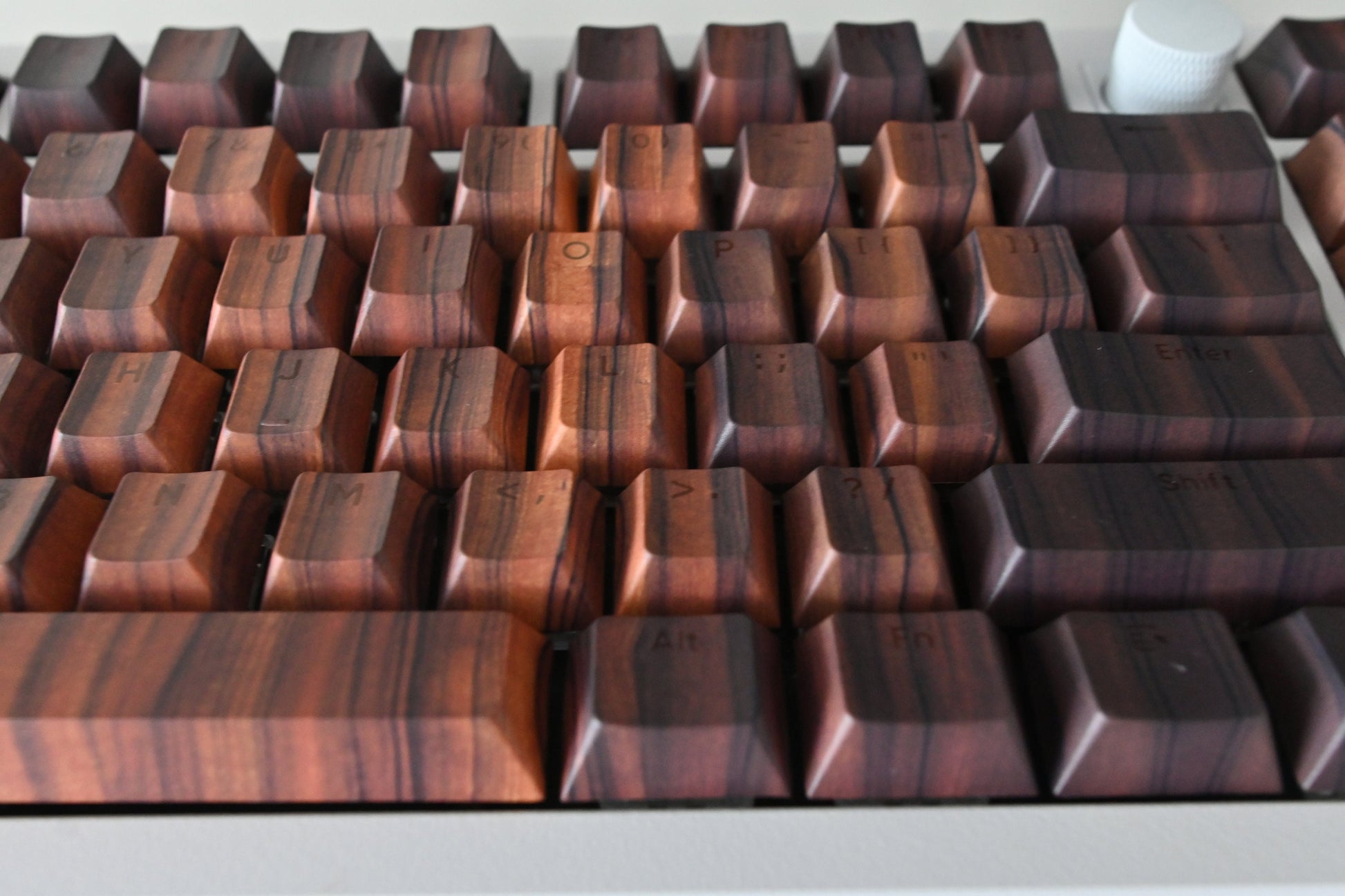 This backlit walnut wood imitation keycap set has a refined elegant look that will give your keyboard a classic natural touch. The keycaps are backlit / translucent, allowing light to shine through the letters on the keycaps.