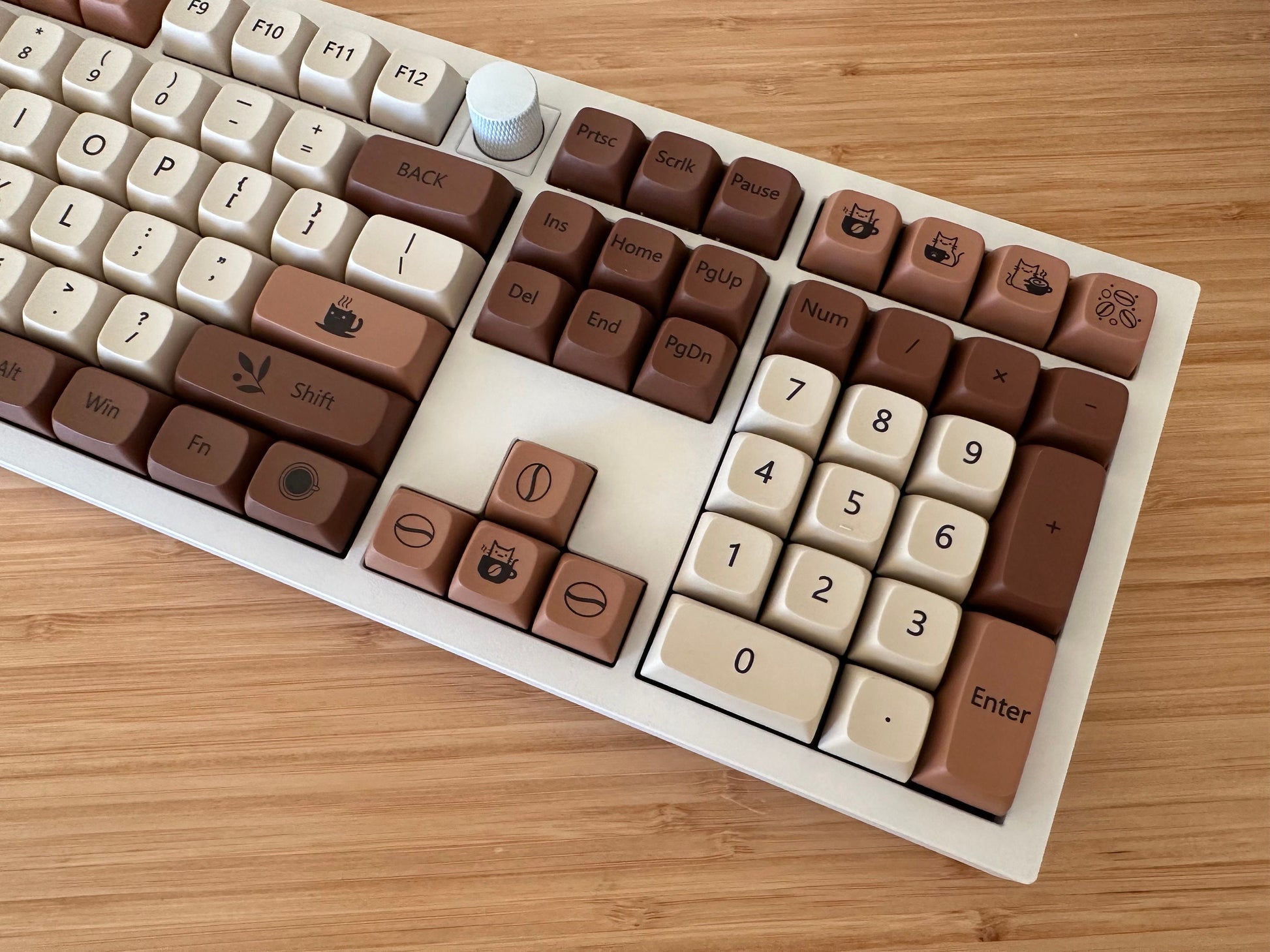 This delicious and adorable coffee cat cafe theme keycap set is going to look so sweet on your mechanical keyboard!