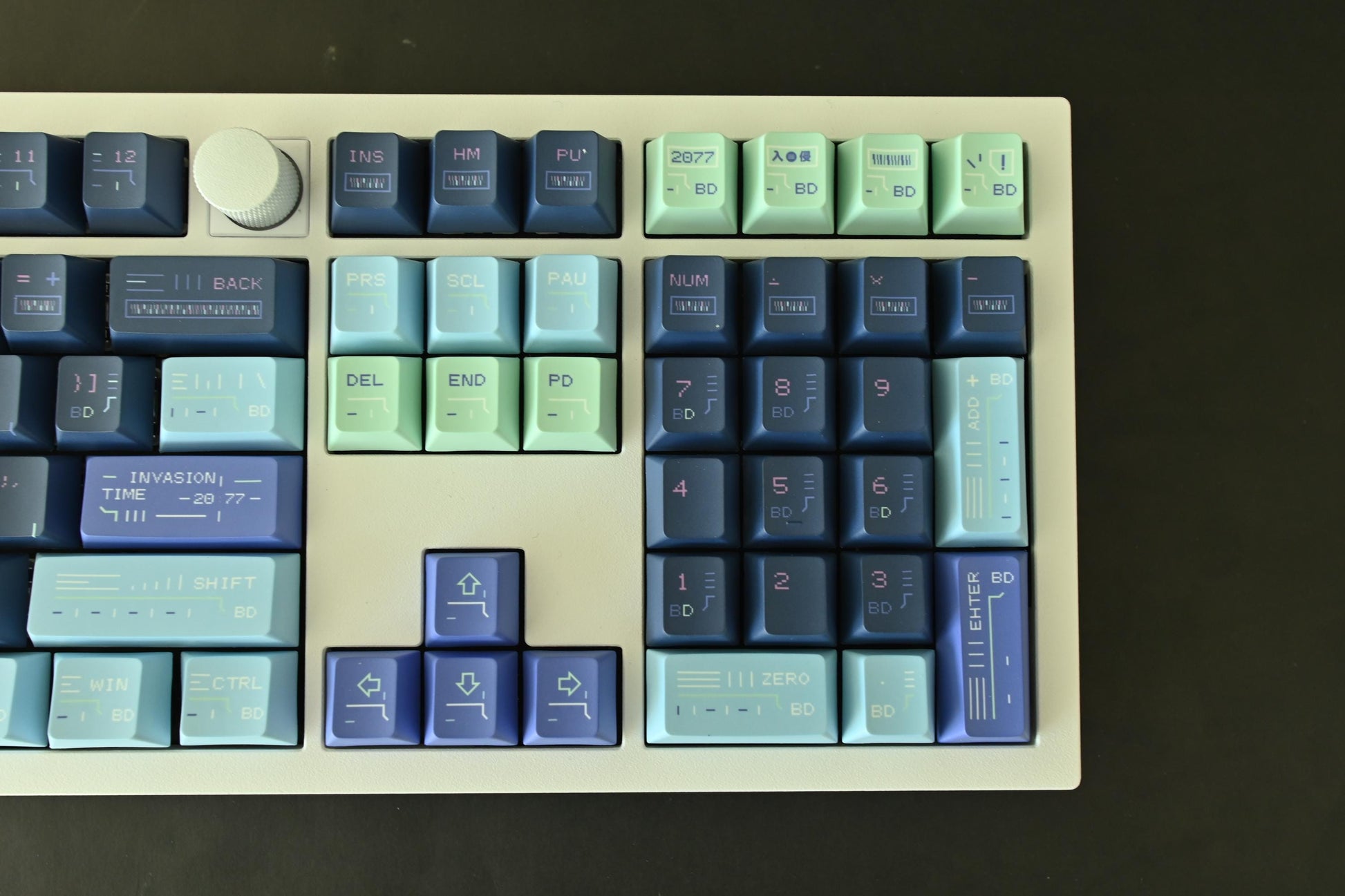 This cyberpunk outer space theme keycap will look give your keyboard a futuristic and modern look. It features pixelated text and dark colors.