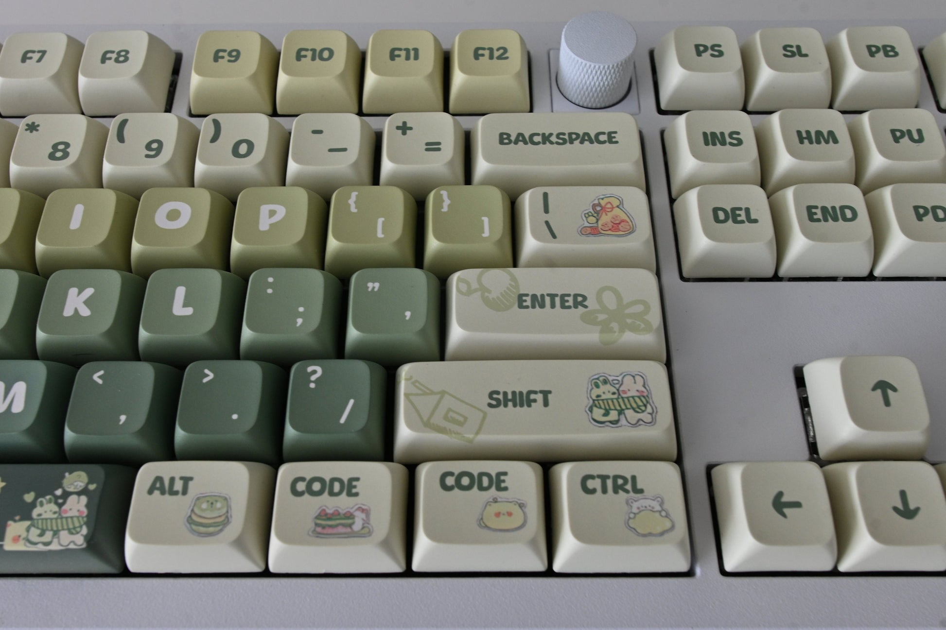 This green gradient keycap set features cute rabbits and lucky clovers. It will be sure to add magic, luck and wonder to your keyboard. Note that the Nordic layout option is in Cherry profile (square and pointy), and as such, will not match the XDA profile which is rounded.