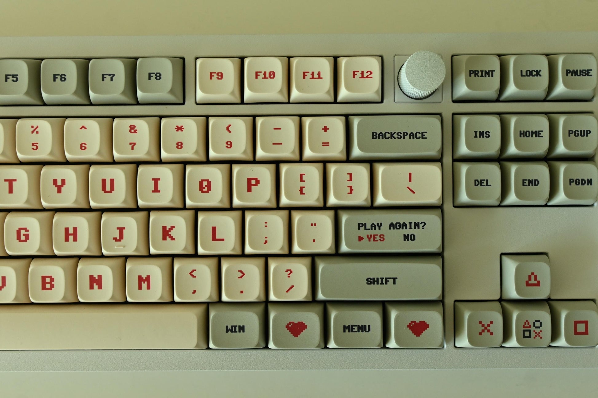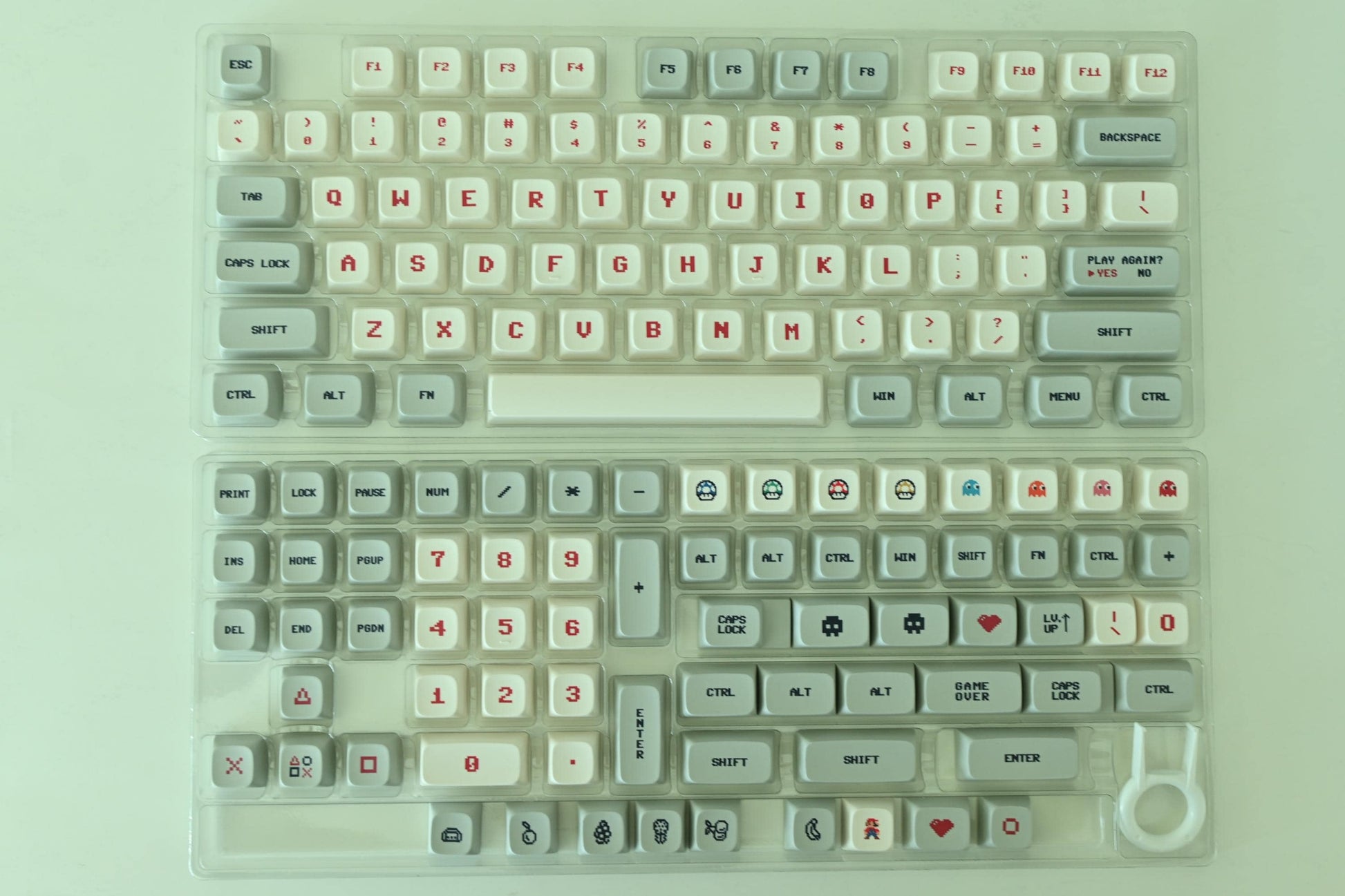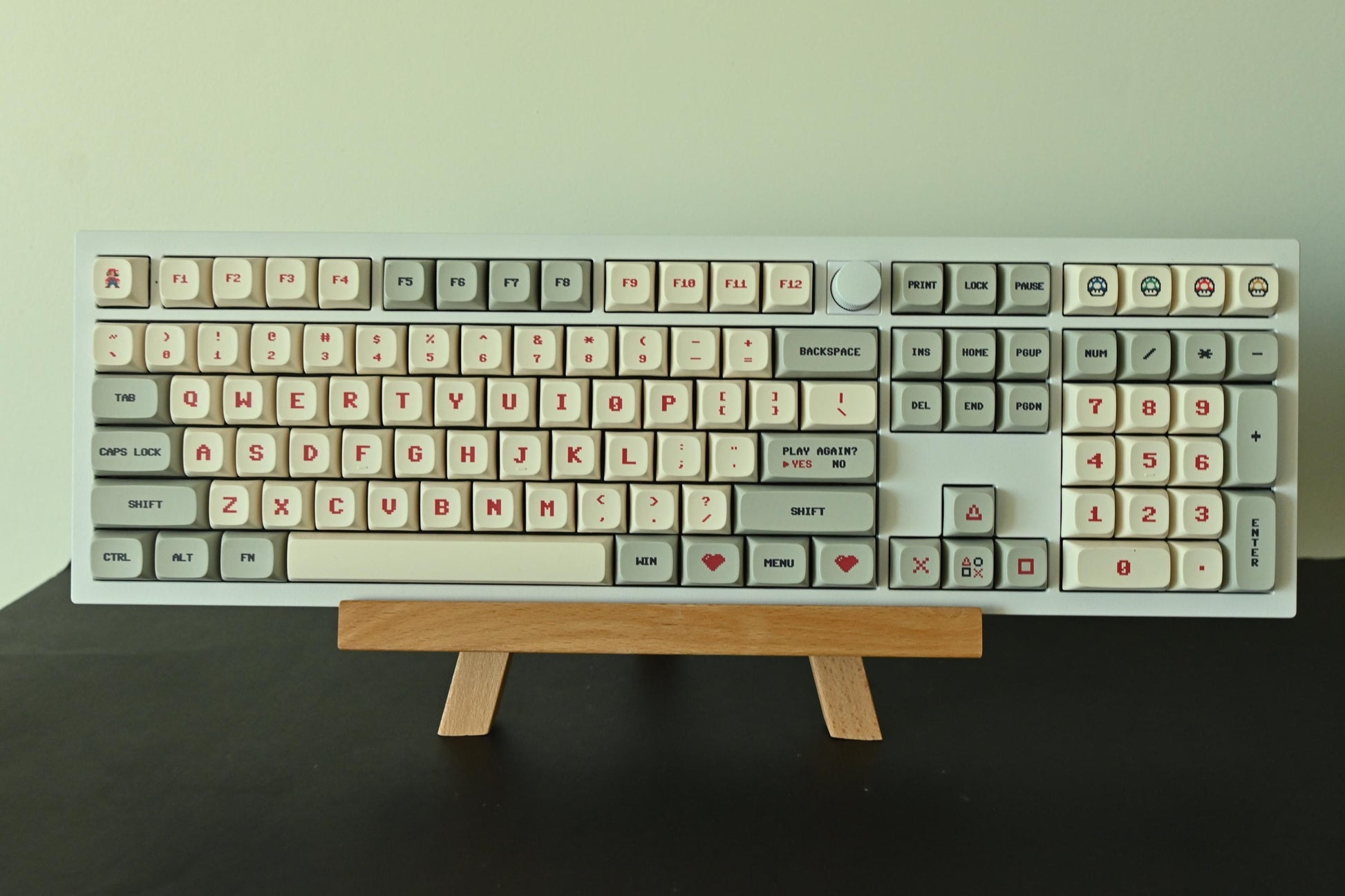 This is a retro Mario theme keycap set with 138 pieces suitable for MX switch mechanical keyboards.